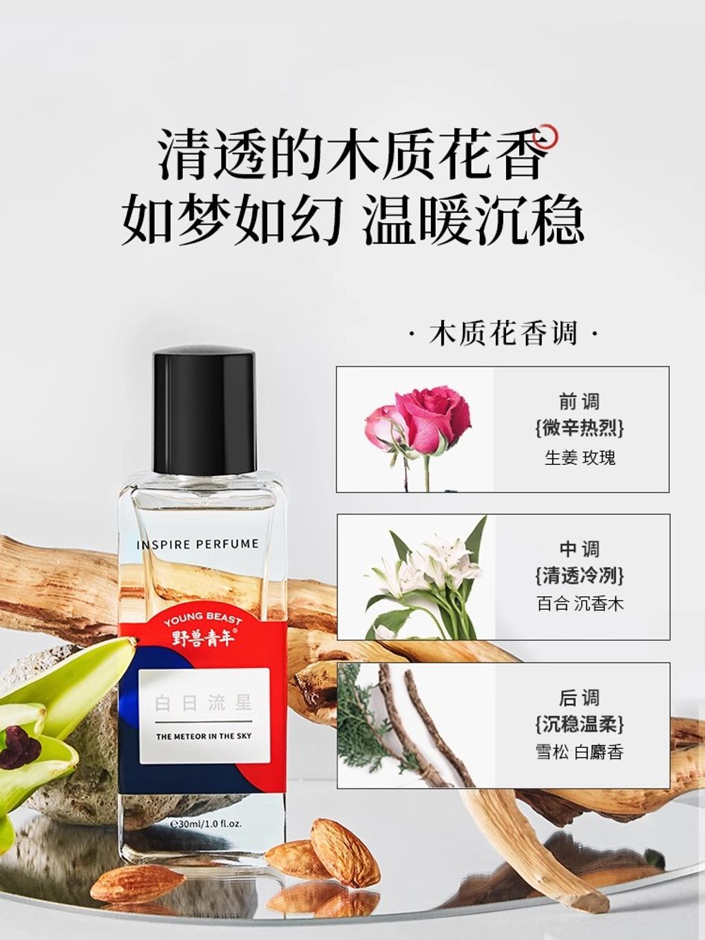 野獸青年「白日流星」清冷木質清新淡香男女香水