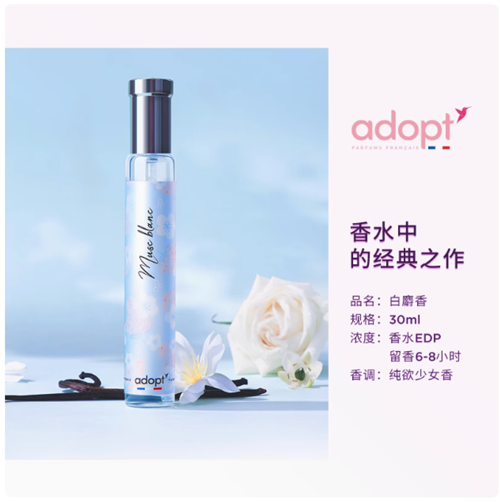 adopt禮物30ml白麝香香水EDP淡香小衆香水沙龍女香持久白茶花香調